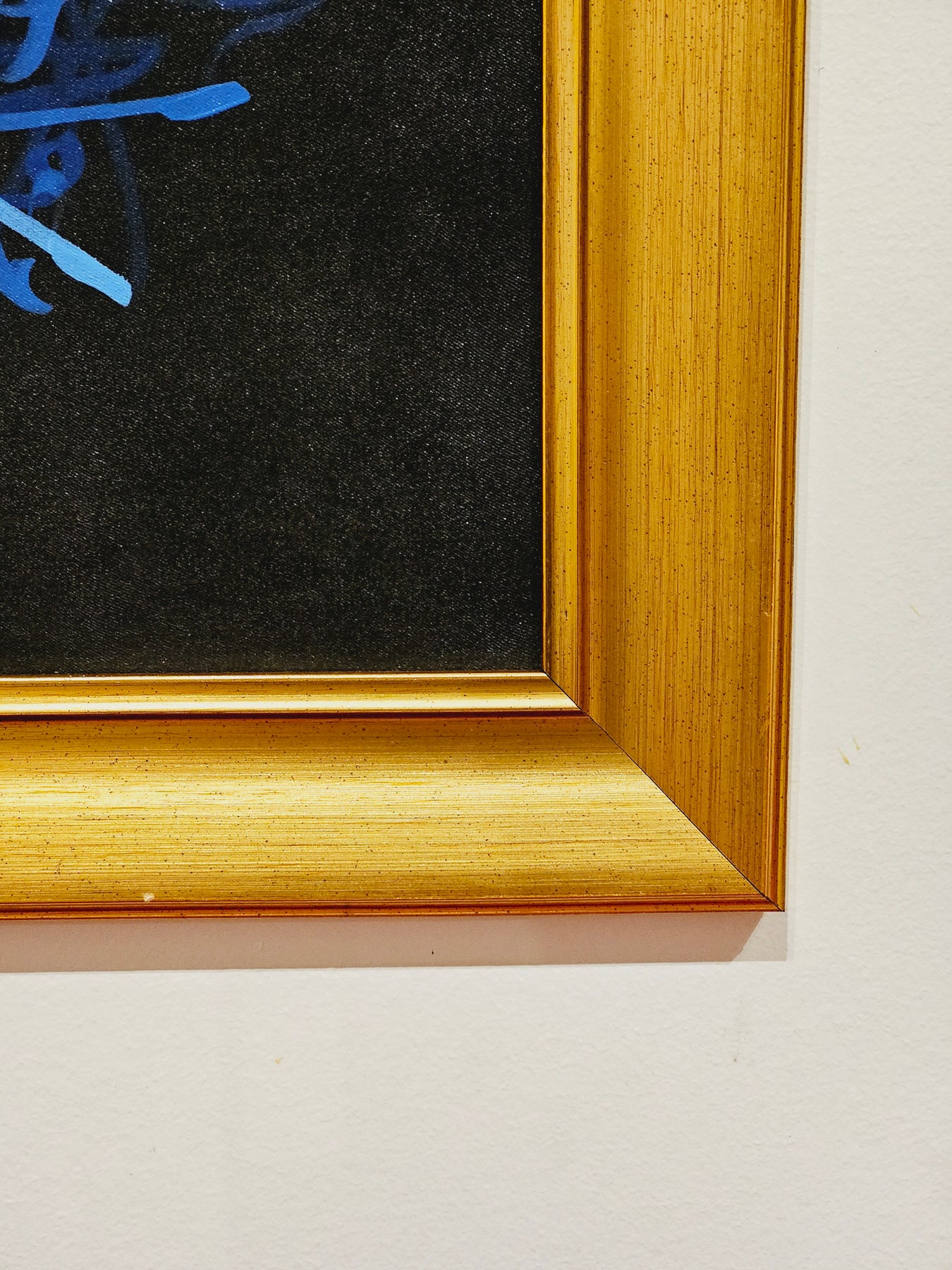 Handmde Calligraphy Painting of Ayat ul Kursi with Gold Leaf, Gold Frame with gold liner