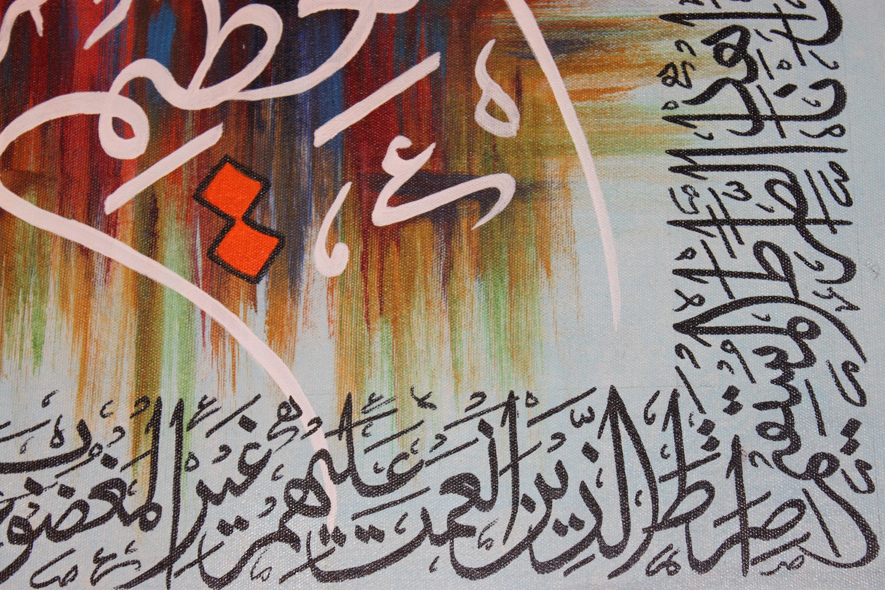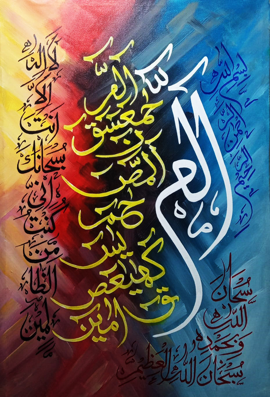 Handmade Oil Painting on Canvas - La Ilaha Illa Anta Subhanaka with Lohay Qurani